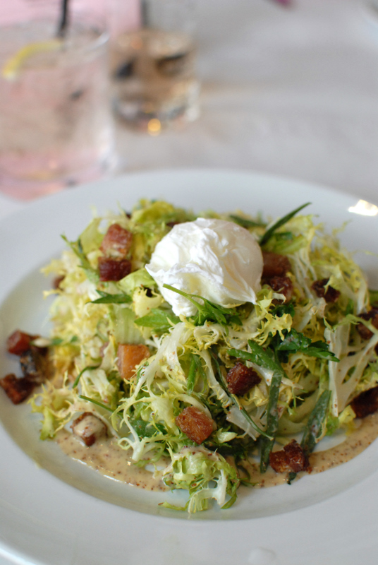 I was navigating with gluten free objectives and found options in each category. I started with a Frisee Salad with a perfectly poached egg, lardons and a beautiful grainy mustard vinaigrette dressing. The salad was fresh with a hint of anise from some other greens mixed in and the flavors melded beautifully.