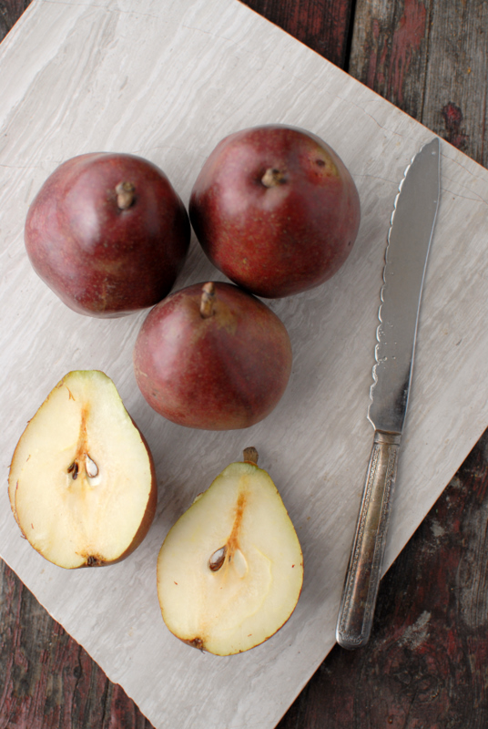 · 1 large pear, ripe but not mushy, peeled, cored cut into 8 long slices (green or red D'Anjou preferred)