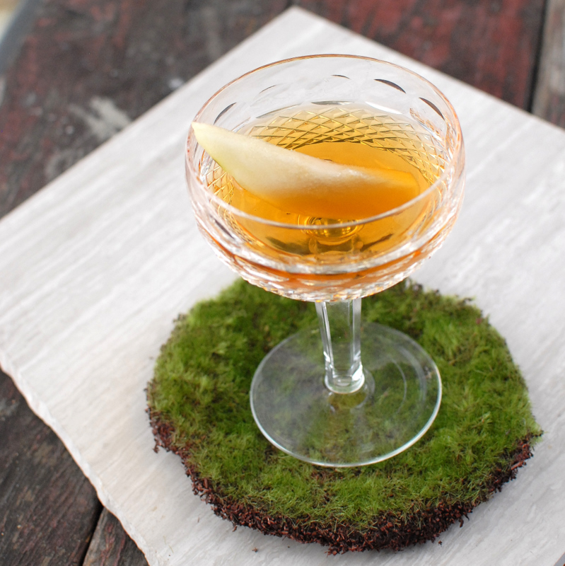 - Add the brandy and pear to a Mason jar or other sealable glass jar/container. Place in a cool, dark place for 2 weeks, turning over and back to right side up daily.