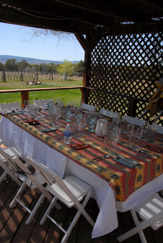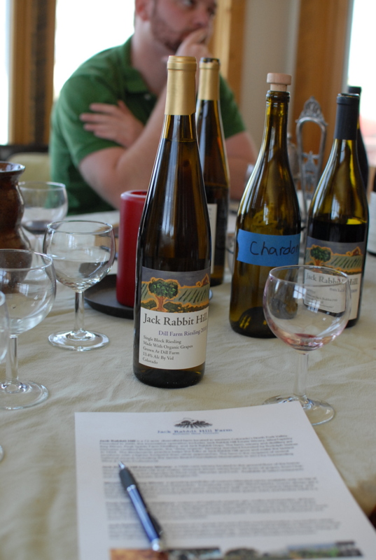 On a day that began feeling much more like summer than late April, we wound up a steep gravel road in the North Fork Valley to the crest of Redlands Mesa and the home of Jack Rabbit Hill Farm. The mere description of this winery had my heart beating a bit faster as it spoke to things of which I'm passionate; organic, biodynamic growing. For those unfamiliar with biodynamics, it is a concept founded in the last century by Austrian writer/educator/activist Rudolph Steiner and simply put it provides a full circle system of sustainability in growing by ensuring a diversified, balanced farm ecosystem generating health and fertility from the farm itself. Everything has a purpose and role in the landscape toward the end result. What would that look like? At Jack Rabbit Hill Farm by example I noted mobile chicken coops where the chickens walk down the rows of grapes in the vineyard eating bugs (pests to the grapes), fertilizing as they go. There are bees at the farm which would aid in pollination, making honey that might be used in some of the farm's products.