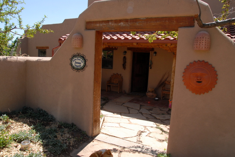 Winding back on the graveled back roads with miles in between properties we arrive at Leroux Creek Vineyard. Leroux Creek is a vineyard, and winery but also a Bed and Breakfast lending itself to a Southwest-meets-Mountain-Mediterranean feeling. One enters what was originally a home that has been adapted to the Bed and Breakfast with a large open kitchen and sitting room all facing a full windowed wall showcasing the sprawling vineyard and backdrop of the soaring West Elks peaks.