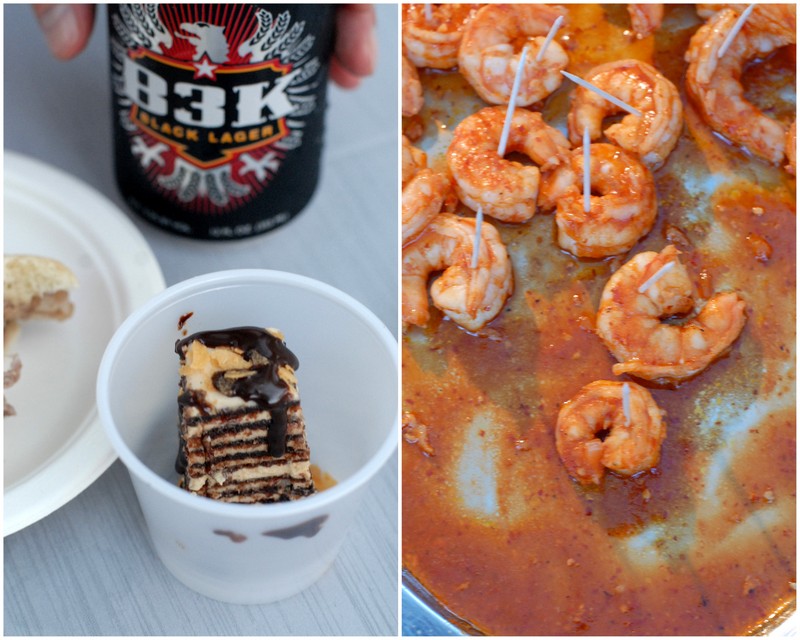 (Top to bottom) Simms Steakhouse: Buffalo Chicken fried steak on a Belgium waffle, The Candy Booth Specialty Liquor Booth: Fruit Loop Cocktail: Loopy vodka (Fruit Loop flavored vodka) and Sierra Mist, McCormick's Fish House and Bar: Freshly Schucked Oysters, Willie G's: Prime Rib Bruschetta with Spicy Aioli