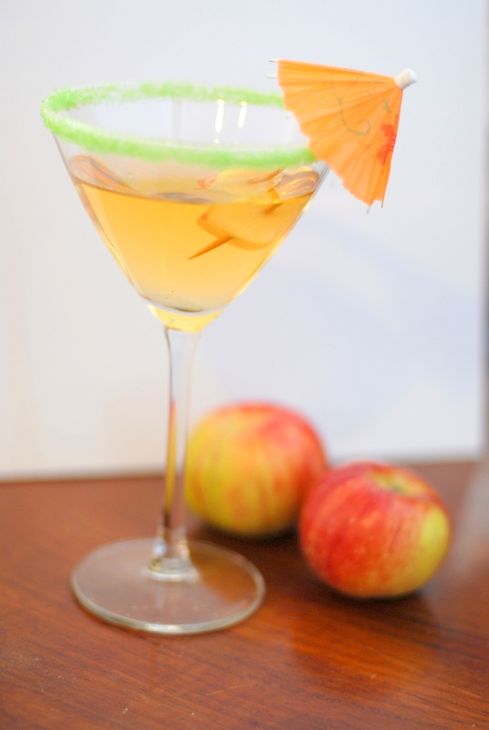 So for extra credit I immediately decided Fern needed a cocktail inspired by her lard-laden fritters. If nothing else it will make my channeling of her vision into modern day easier for ME. I think Fern, once assuring herself no one was at home would turn on some moody jazz on the crackling radio, pull out a hidden pack of cigarettes that she kept in an unused pitcher on the highest shelf of her cupboard and shake herself up an Apple Martini which she'd slowly sip while making up her fritters and other pot luck'y dishes for the Church Social. Truth be told? I think she'd put on blood red lipstick and high heels too; but only if no one was at home.