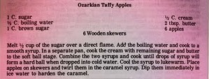 This month's vintage recipe for updating is Ozarkian Taffy Apples. I was stumped about what would be unique to the Ozarks and their caramel apples warranting the regional identifier. Fortunately before I had to crack Google and go to town, 'Swapper Savant', Jennifer of the Adventuresome Kitchen, once again jumped to the forefront to educate.